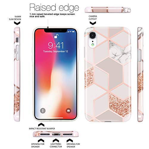 Jaholan Cover iPhone XR Custodia Bling Glitter Sparkle Rose Gold Marmo Design Silicone Gomma TPU Ultra Leggera Chiaro Flessibile Sottile Molle Cover per iPhone XR