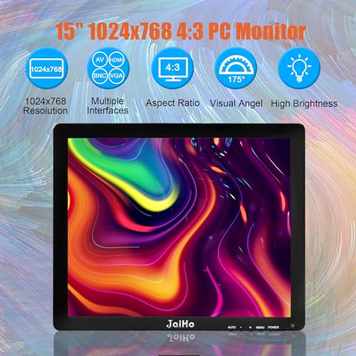 JaiHo Monitor da 15 Pollici LCD Schermo 1024x768 Risoluzione TFT LCD Monitor Desktop, HDMI Monitor a Colori con HDMI/VGA/BNC/AV per PC Camera DVR,CCTV, Telecamera di Sicurezza, Nero
