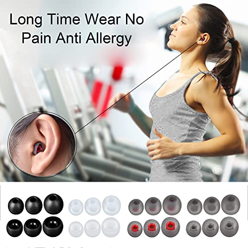 Jaimela 48 Pezzi Earbud Pads Earbud di Ricambio in Silicone per Auricolari da 4,5 a 6 mm Suggerimenti, Compatibile con la Maggior Auricolari, 3 Taglie(Rosso Grigiastro/Trasparente/Nero/Grigio)
