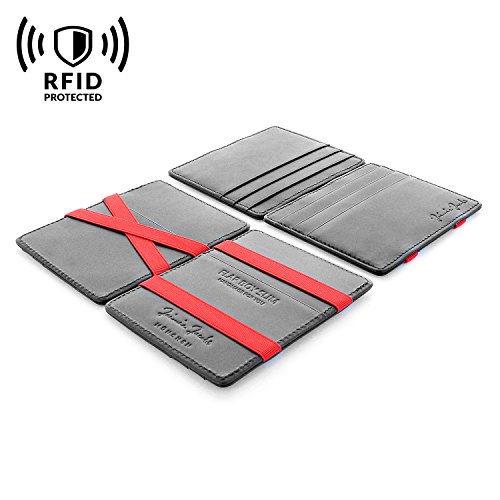 rfid-blocker: il nostro portafoglio è dotato di tecnologia RFID protezione all' avanguardia. tramite RFID (Radio Frequenza identificazione), è possibile accedere ai dati personali su chip on passaporti, identificazione e carte di credito contactless. criminali equipaggiato con il buon dispositivi può facilmente rubare la maggior parte dei dati personali. Il nostro Magic portafoglio con tecnologia di schermatura 100% sicuro proteggere tutte le tue carte e