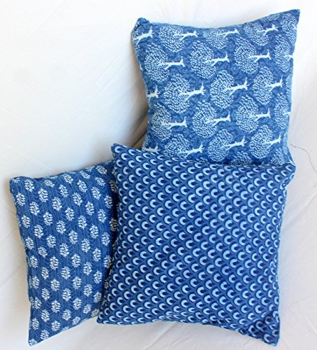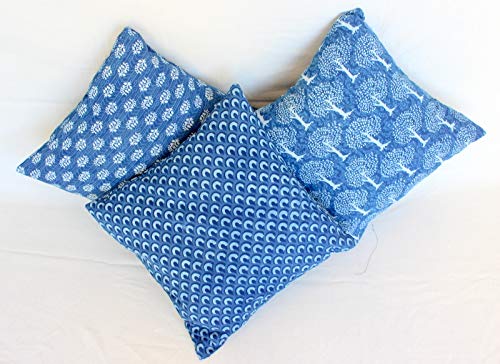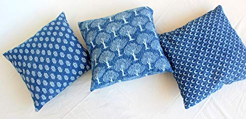 Jaipur Set di 3 Tessuti Indaco Stampati a Blocco di Cuscini Indiani Fodere