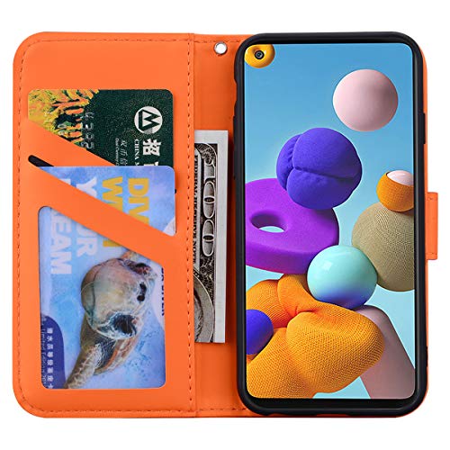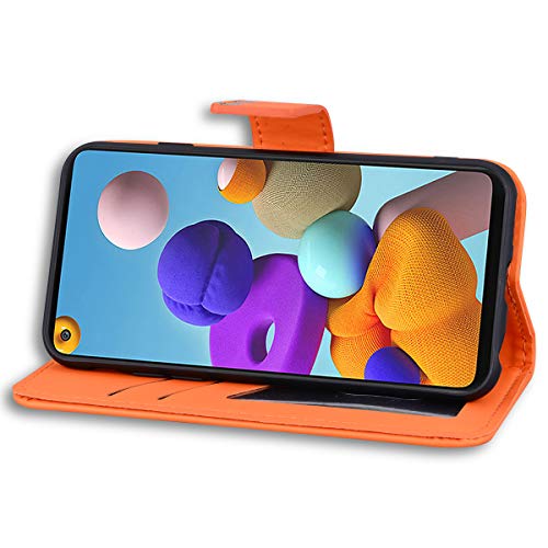 Jajacase Custodia per Samsung Galaxy A21s- Portafoglio Libro Cover Flip Caso Shell Protettiva Accessori in Pelle PU con Supporto, Tasca per Schede e Chiusura Magnetica - Arancia