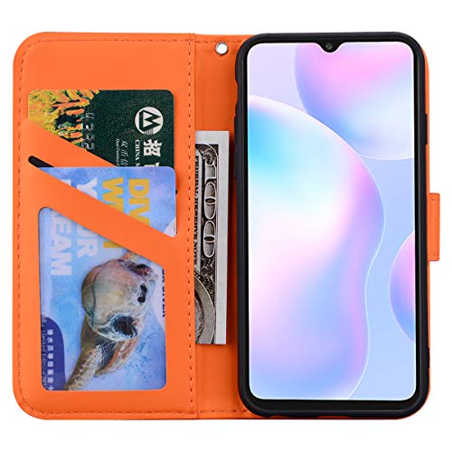 Jajacase Custodia per Xiaomi Redmi 9A - Portafoglio Libro Cover Flip Caso Shell Protettiva Accessori in Pelle PU con Supporto, Tasca per Schede e Chiusura Magnetica - Arancia