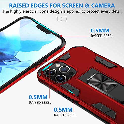 Jaligel Cover per iPhone 12 / iPhone 12 PRO 6,1 Pollici Custodia con Supporto, Custodia Sottile per Assorbimento degli Urti con Paraurti in TPU Morbido Antiurto AntiGraffio Custodia - Rosso