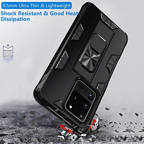 Jaligel Cover per Samsung Galaxy S20 Ultra, Custodia con Supporto (Lavoro con Supporto Magnetico per Auto) Antiurto TPU Bumper Silicone Custodia AntiGraffio Armor Hard Protettiva Cover - Nero