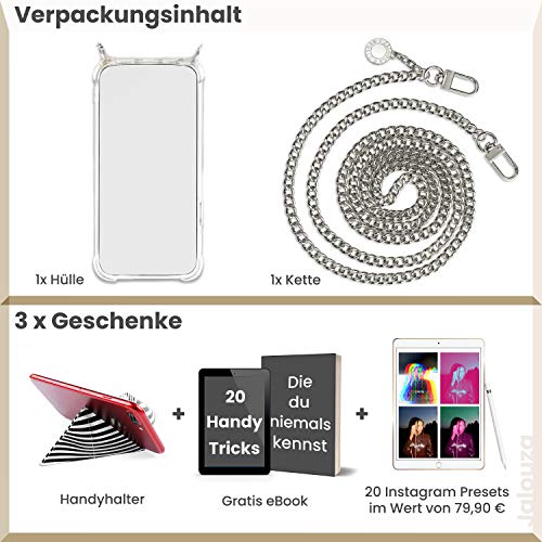 Jalouza Catena Cellulare Compatibile con iPhone 6 Plus/7 Plus/8 Plus, Catena in Argento con Custodia per Cellulare per Collana, Catena a Maglie, Collana per Telefono Cellulare Progettato a Berlino