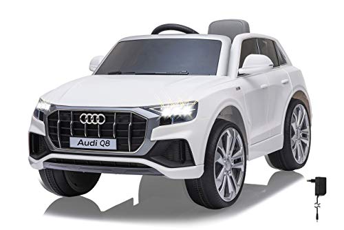 JAMARA- Ride On Car Audi Q8 12 V-1,5 Ore Tempo di Guida, potenti, 2 Marce, SD, AUX, USB, clacson, Suono del Motore, fari a LED, indicatore della Tensione della Batteria, Colore Bianco, 460201