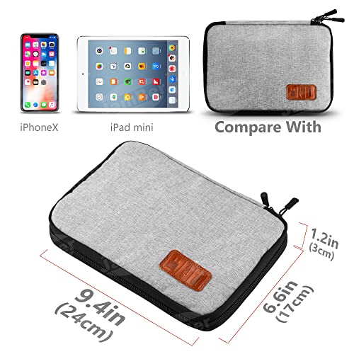 Design interno user-friendly, doppia cerniera e tiretti per cerniere, ti aiuta ad aprire la custodia più facilmente, le cerniere possono essere indossate e scaricate liberamente.1 Sacchetti per schede SD, 1 tasca interna con cerniera, 5 tasche in rete con passanti elastici, 9 passanti elastici, perfetti per riporre i tuoi accessori elettronici. Una tasca extra in velcro si adatta bene al tuo ipad mini.Give 5 fascette extra.