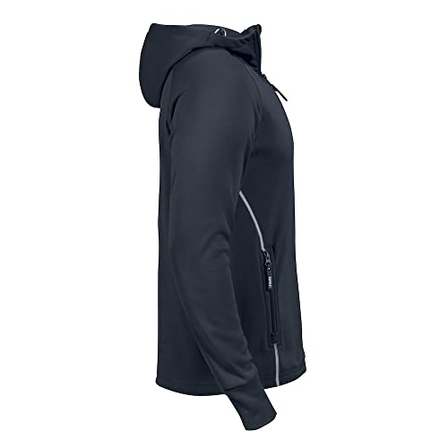 Un design moderno e sportivo, assicurati di avere il comfort perfetto in movimento con le sue cuciture a contrasto e la manica con foro per il pollice alla fine insieme al suo cappuccio elastico con cordino, questo è un pile perfetto per qualsiasi esploratore.