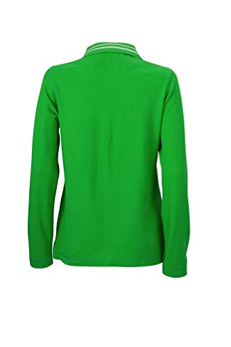 JAMES & NICHOLSON Donna Polo manica lunga con dettagli alla moda (L, verde/bianco sporco)