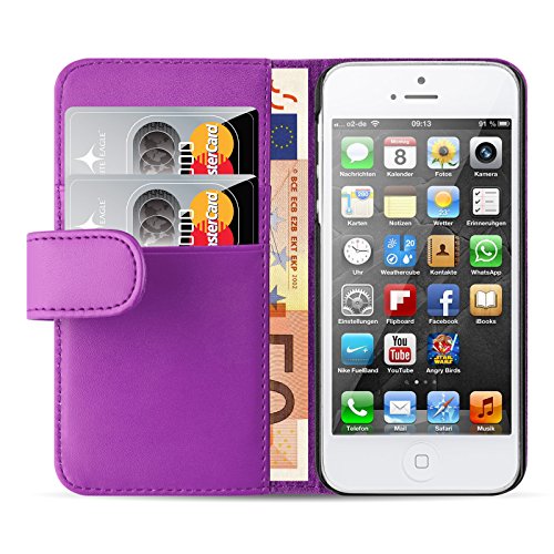 JAMMYLIZARD | Cover custodia Regular Wallet a Libro in Pelle per iPhone 5 e 5s e iPhone SE, VIOLA