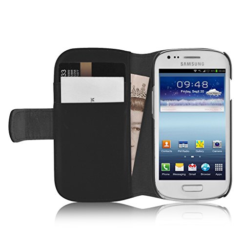 JAMMYLIZARD | Cover custodia Regular Wallet a Libro in Pelle per Samsung Galaxy S3 Mini, NERO