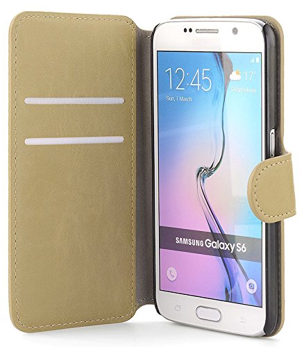 JAMMYLIZARD Cover Galaxy S6, [Retro Wallet] Custodia a Libro Portafogli in Pelle per Samsung Galaxy S6, CAPPUCCINO