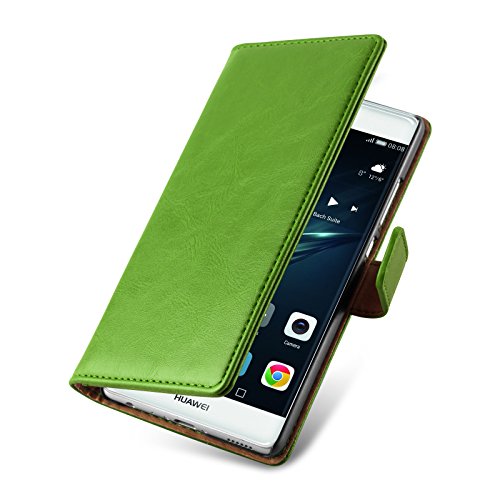 JAMMYLIZARD Cover Huawei P9, [Retro Wallet] Custodia a Libro Portafogli in Pelle per Huawei P9, Verde Erba