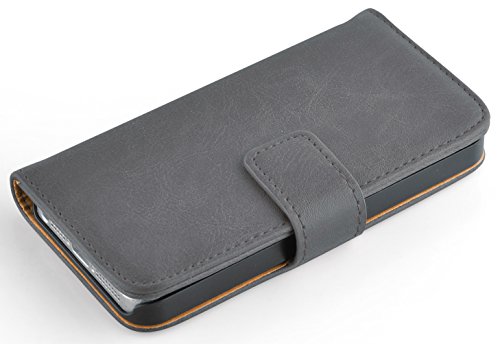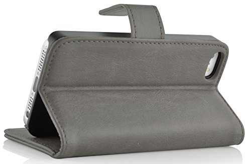 JAMMYLIZARD Cover iPhone 5s, [Retro Wallet] Custodia a Libro Portafogli in Pelle per Apple iPhone 5 / Apple iPhone 5s / Apple iPhone SE, Grigio