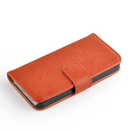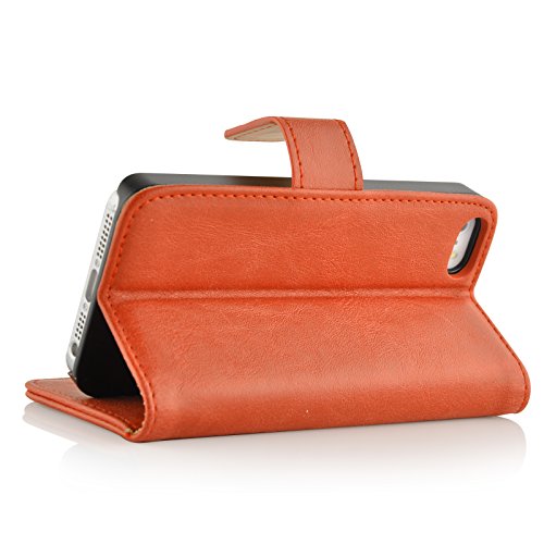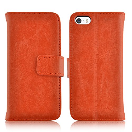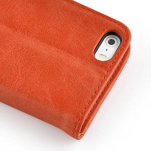 JAMMYLIZARD Cover iPhone 5s, [Retro Wallet] Custodia a Libro Portafogli in Pelle per Apple iPhone 5 / Apple iPhone 5s / Apple iPhone SE, Arancione