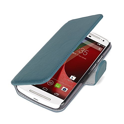JAMMYLIZARD Cover Moto G2, [Retro Wallet] Custodia a Libro Portafogli in Pelle per Motorola Moto G (2 Generazione), Verde Petrolio