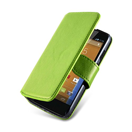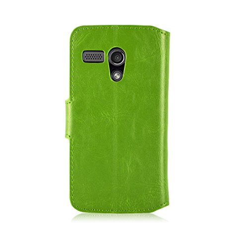 JAMMYLIZARD Cover Moto G, [Retro Wallet] Custodia a Libro Portafogli in Pelle per Motorola Moto G (1 Generazione), Verde Erba