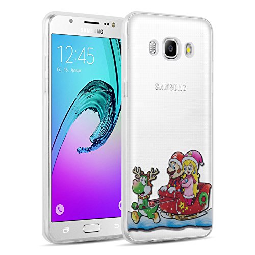 JAMMYLIZARD Custodia per Samsung Galaxy J5 (6) 2016 | Cover [Sketch] in Silicone Trasparente Morbido Ultra Slim con Disegno Fantasia di Natale, Slitta Mario
