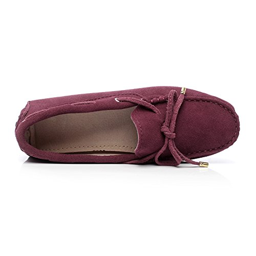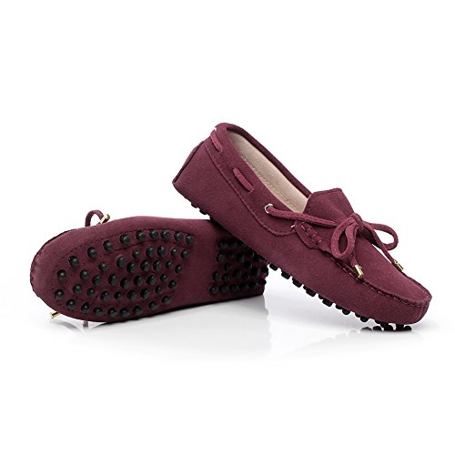 Jamron Donna Classico Scamosciato Papillon Loafers Comodo Fatto a Mano Mocassini Pantofola Borgogna 24208-2 EU39.5