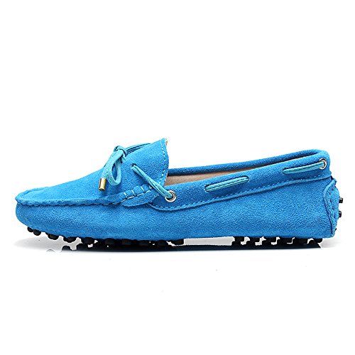 Jamron Donna Classico Scamosciato Papillon Loafers Comodo Fatto a Mano Mocassini Pantofola Azzurro 24208-2 EU40