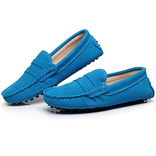 Jamron Donna Classico Scamosciato Penny Mocassini Comfort Fatto a Mano Pantofola Azzurro 24208 EU38.5