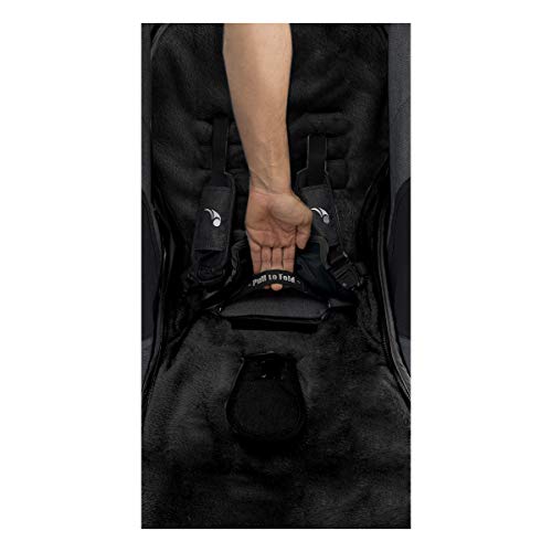 Il sacco è composto da due pezzi, il corpo principale che si aggancia al passeggino o alla sedia, con fino a 7 punti di ancoraggio e uno strato esterno, uniti da una cerniera.