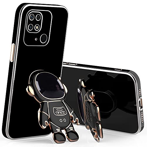 Jancyu Cover Redmi 10C, Custodia Xiaomi Redmi 10C Originale Silicone, Antiurto e Minimalista Smartphone Case 360 Cute Cartone Space Astronauta Kickstand Protettiva Sottile Accessori (Nero)