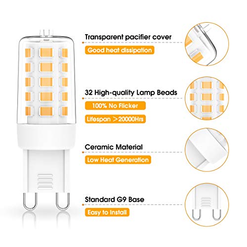 JandCase G9 LED dimmerabile, 3.5W G9 lampadine LED, equivalente a 28W 30W 33W G9 alogena, bianco caldo 3000K, 350 lumen, dimmerabile, confezione da 5