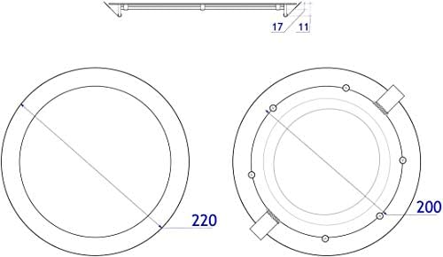 ✔Diametro: 225mm - Profondità del foro: 13mm solo il dispositivo, senza contare il driver - Diametro del foro di montaggio: Ø 200 mm ~ Ø 205 mm