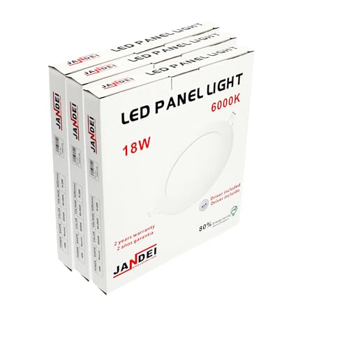 JANDEI - 3 Faretti Led da Incasso, 18W, 1440 Lumen, Forma Rotonda, Ultra Sottile 13mm, Colore della Luce Bianco Freddo 6000K, Foro Incasso Ø 200- Ø 205 mm, Trasformatore Incluso