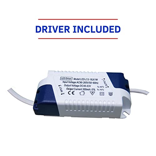 JANDEI - 2 x Faretti da soffitto LED da superficie 18W rotondo luce bianca fradda 6000K (equivalente a 140W), cerchio in alluminio bianco opaco