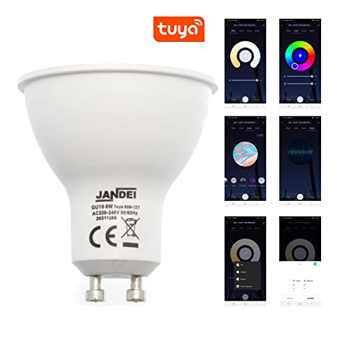 JANDEI - Lampadina LED GU10 Smart, 6W, controllo WIFI, RGB + CCT dimmerabile, compatibile con Tuya Smart App, Smartlife, Amazon Alexa e Google Home, consumo ridotto (1 UNITÀ)