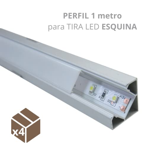 JANDEI - 4x Profili in Alluminio 1 Metro, a Forma di V per l'installazione di Strisce Luminose a LED in Angoli a 90°, Diffusore Traslucido - 18,2mm x 18,2mm, con Tappi Terminali e Accessori (GRIGIO)