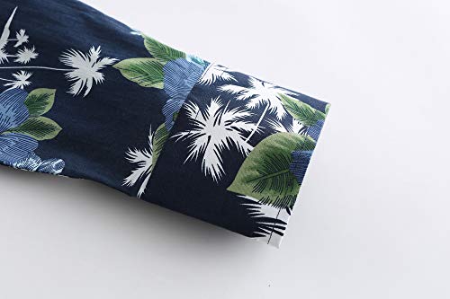 Jandukar Uomo Cotone Manica Lunga Moda Stampa Camicia di Fiore (Blu Navy, Medium)