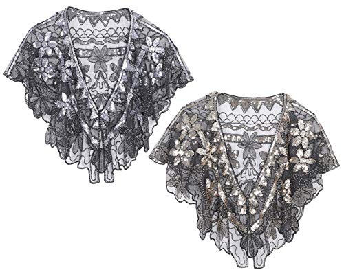 Ro Rox Janet 1920's Grande Gatsby Festa Flapper Alzata di Spalle Bohemian impacco Sciarpa Scialle per Donna {Nero e Oro Taglia Unica}