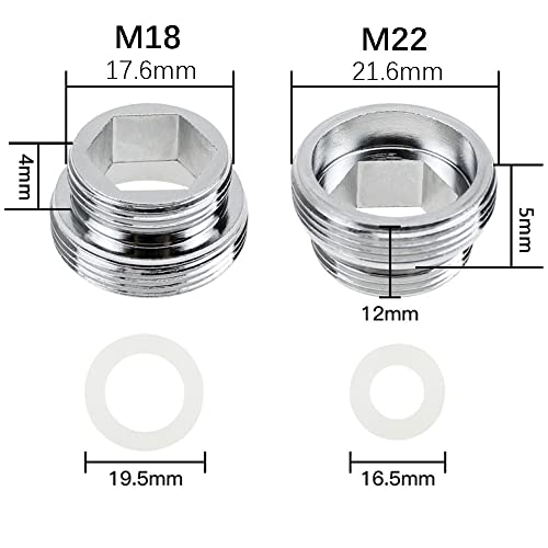 JaneYi 5 pezzi Adattatore per Rubinetto da Cucina Maschio da 18mm a Maschio da 22mm Connettore per Aeratore del Rubinetto Giunti Filettati Esterni in Ottone con 10 Guarnizioni - per Rubinetto Femmina