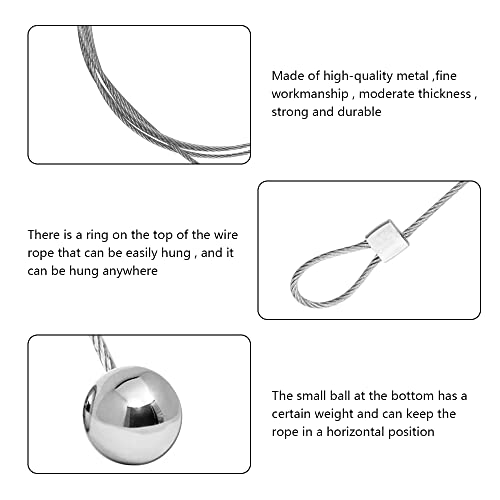 Facile da installare - C'è un anello nella parte superiore della fune metallica, facile da appendere, puoi appenderlo ovunque. Forniamo 4 ganci autoadesivi per aiutarti ad appendere meglio la fune metallica.