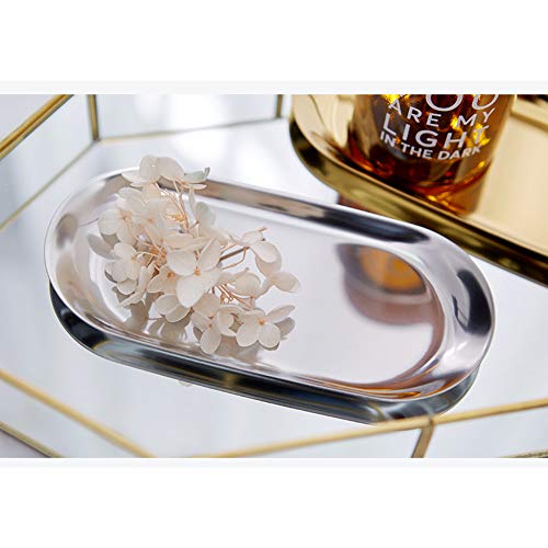 JaneYi Vassoio di Stoccaggio in Acciaio INOX 23 x 9,7cm Vassoio Asciugamani Ovale Organizzatore di Gioielli Cosmetici Piatti a Candela Vassoio per Snack Tè Chiave Burro - Argento