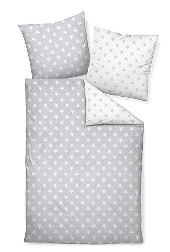 Janine 6466 Davos biancheria da letto in cotone Twill Argentato, Cotone, grigio, 155 x 220 cm