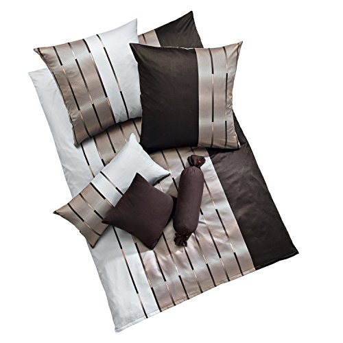 Janine lenzuola chincilla 7621, federa 07 marrone argento, pregiata morbida, 100% cotone, 07 braun silber, 155 x 200 cm