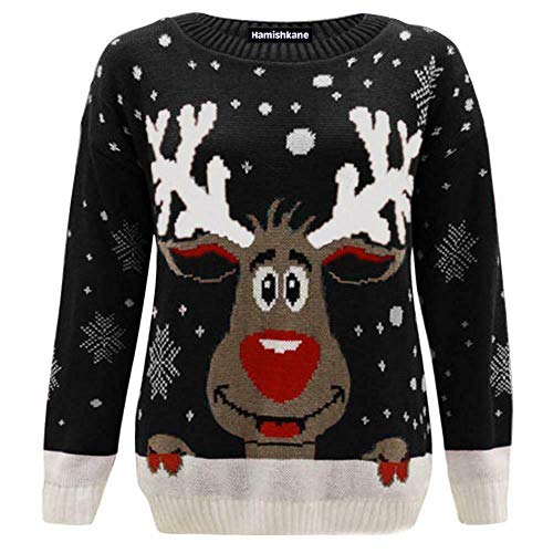 Janisramone Magione natalizio unisex, motivo: renna, a maniche lunghe, stile vintage Black - Reindeer 48-50