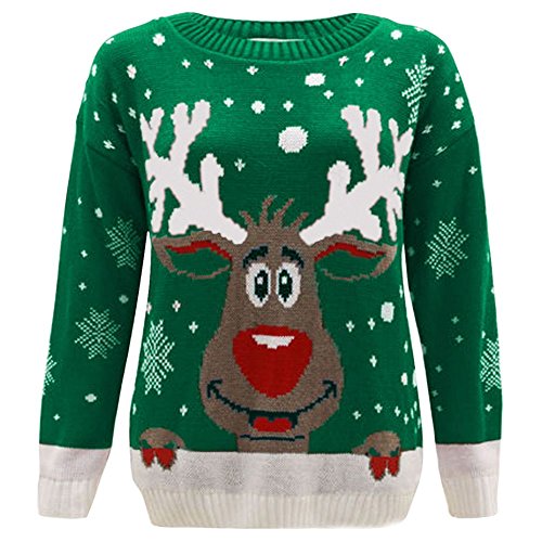 Janisramone Magione natalizio unisex, motivo: renna, a maniche lunghe, stile vintage Jade Green - Reindeer M/L(44-46)