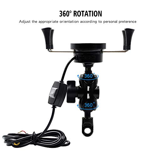[Caricabatterie rapido wireless USB / QC / QI 10W / 7,5W / 5W e supporto per cellulare]: il design 2-IN-1 combina un caricabatterie rapido wireless USB / QC / QI 10W / 7,5W / 5W e un supporto per cellulare per motocicletta .USB uscita 5 V / 3,4 A, 9 V / 3,5 A, 12 V / 2 A supporto QC3.0