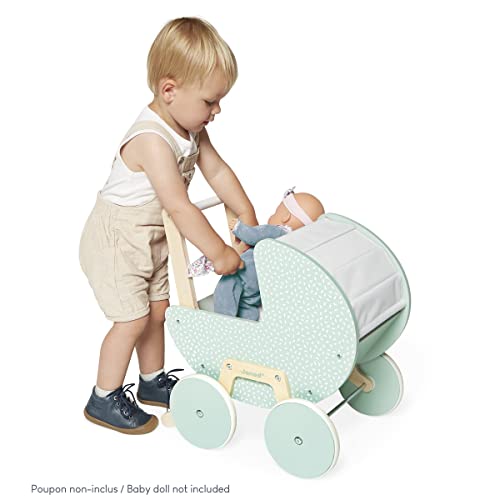 Janod - Carrozzina Zen in Legno FSC - Giocattolo di Imitazione - Carrozzina per Bambole - Con Cuscino e Copertina - Dai 18 Mesi, J05900