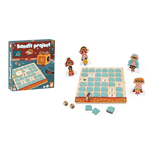Janod - Gioco del Bandito - Gioco di Riflessione e Logica per Bambini - Tabella a Doppia Entrata - Gioco in legno e cartone FSC - Dai 5 Anni, J05087