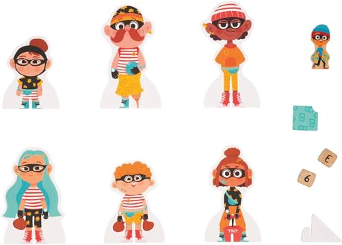 CARATTERISTICHE - Contiene 1 piattaforma in legno FSC, 1 statuina e 2 dadi in legno, 6 personaggi e 36 carte in cartone, 3 fogli con indizi fronte-retro. Dimensioni: 27,1 x 29,6 x 1,2 cm. Gioco Janod adatto dai 5 ai 7 anni.
