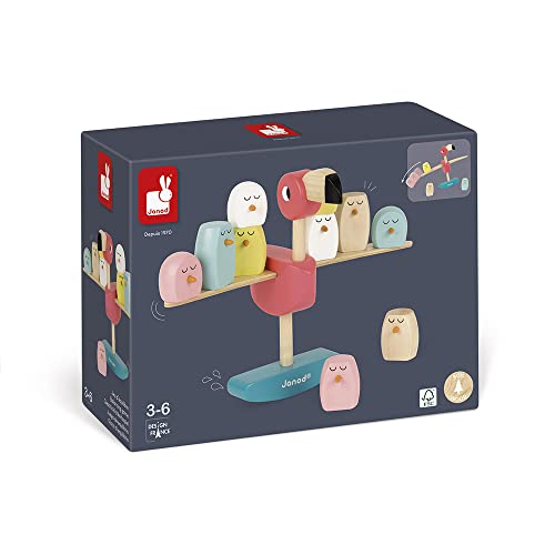 Janod - Gioco di equilibrio fenicottero rosa Zigolos (legno), gioco di manipolazione, trattato con vernici ad acqua, per bambini dai 3 anni in su, J08230, multicolore