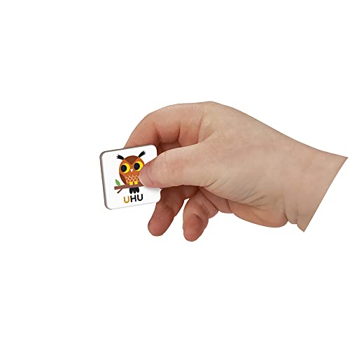 Dopo aver aperto il libro, lo scopo del gioco è scrivere correttamente con le lettere la parola riportata sul magnete illustrato