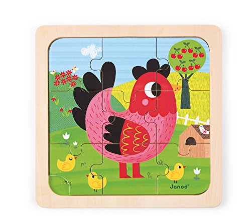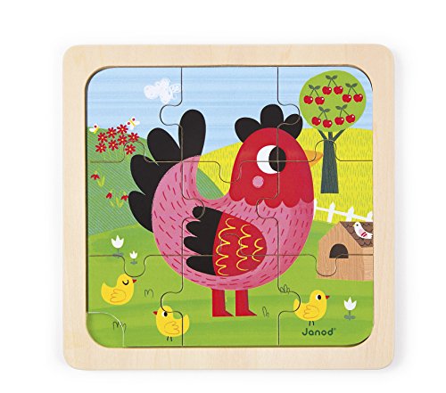 Janod J07064 Wooden puzzle 9 pieces, Violette Chicken